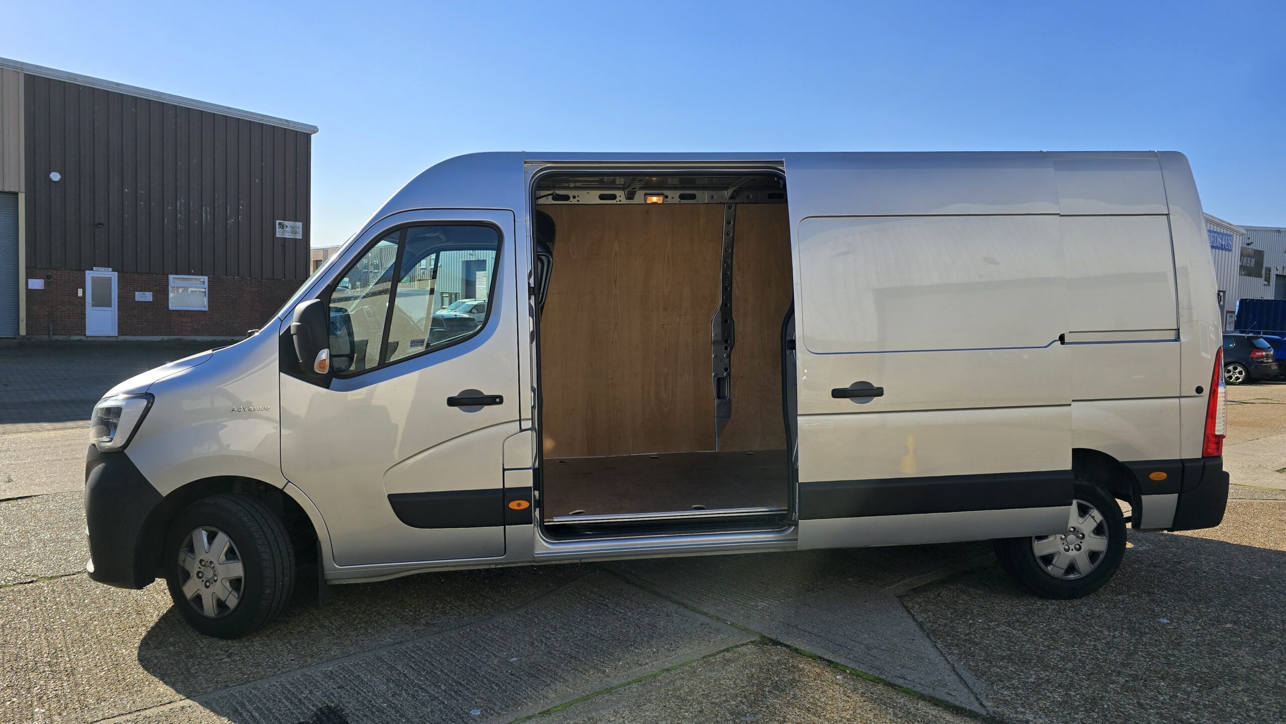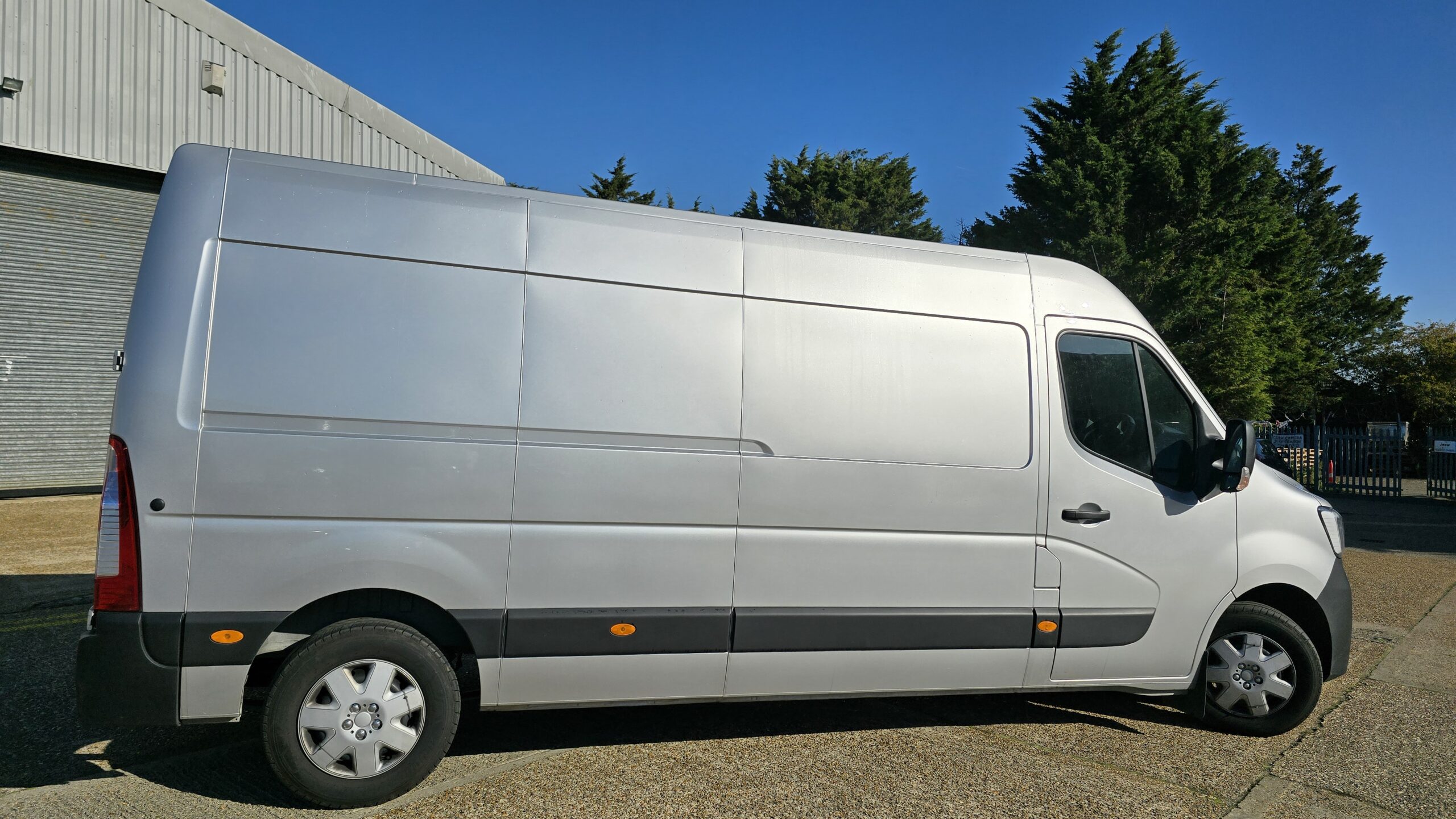 Renault Master. ULEZ compliant, lots of space. Double doors at the rear and a sliding side door on the near-side.
